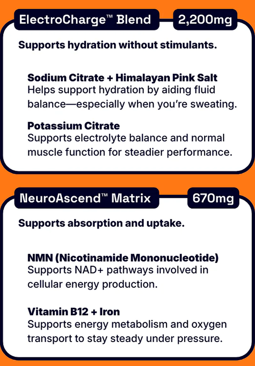 NMN and BioAscend™ are included to support cellular energy pathways involved in ATP production. Vitamin B12 supports normal energy metabolism. Together, they help support steady output instead of short-lived highs.